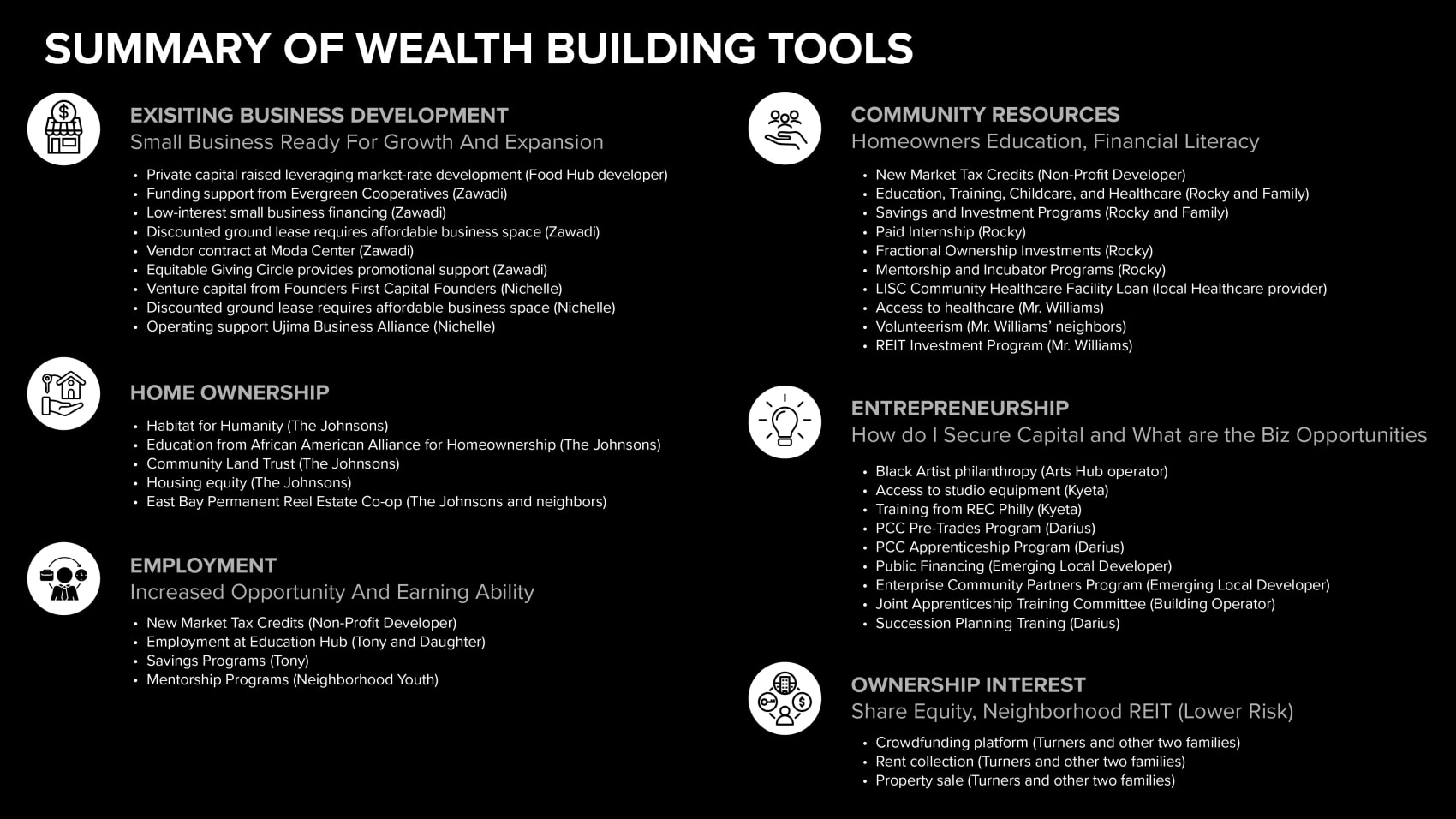 A re-entrification project that leverages community wealth-building strategies to organize an equitable planning process