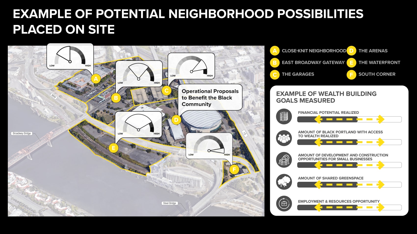 On the one hand, Albina is home to some of Portland’s most dynamic civic and entertainment venues—where a diversity of people come together. On the other hand, it is about 94 acres of central city real estate where some of our most conspicuous challenges converge: a lack of affordable housing and resulting homelessness; a maze of transportation infrastructure; the patchwork of private and public land ownership that makes pedestrian access to the east bank of the Willamette River impossible; and finally, the painful reminder of the intergenerational damage of displacement.
