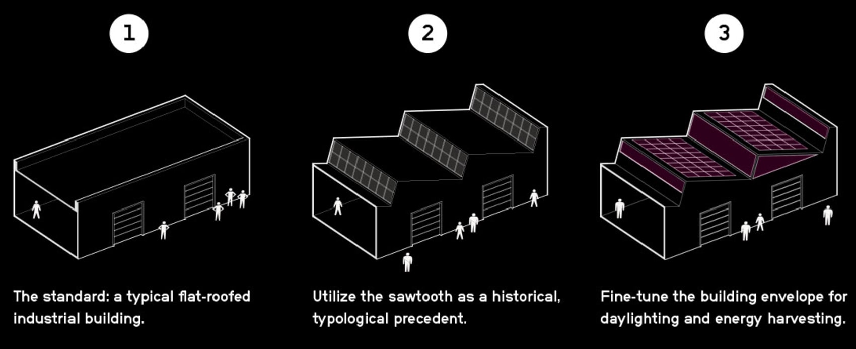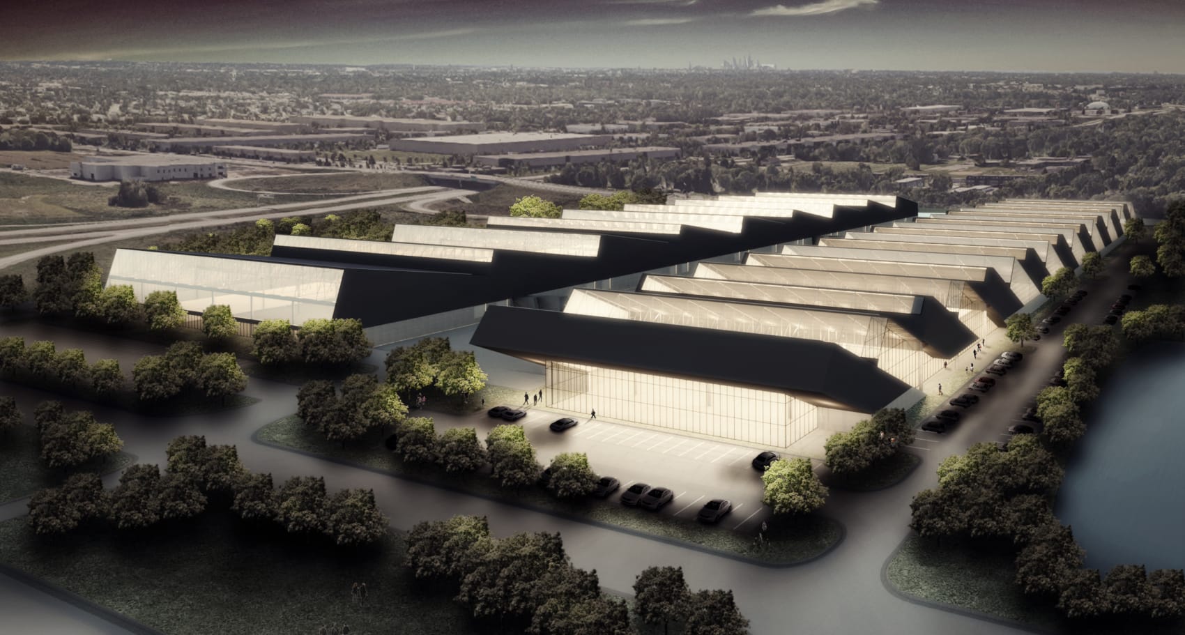View MoreLessThe Brooklyn Park prototype shifts a common industrial typology towards a sustainable solution that is scalable for maximum impact. The facility replaces the common flat roof with a lightweight sawtooth structure, creating new opportunities for diffuse natural north-facing daylighting and ease of south-facing PV solar panel installation. The sawtooth roof structure also organizes the facade in ways that are dynamic and unexpected. The light footprint design is ideal for clean manufacturing, introducing 50'-0" bays for flexible programming. Brooklyn Park leverages historic industrial typologies to create a sustainable manufacturing facility for the 21st century.