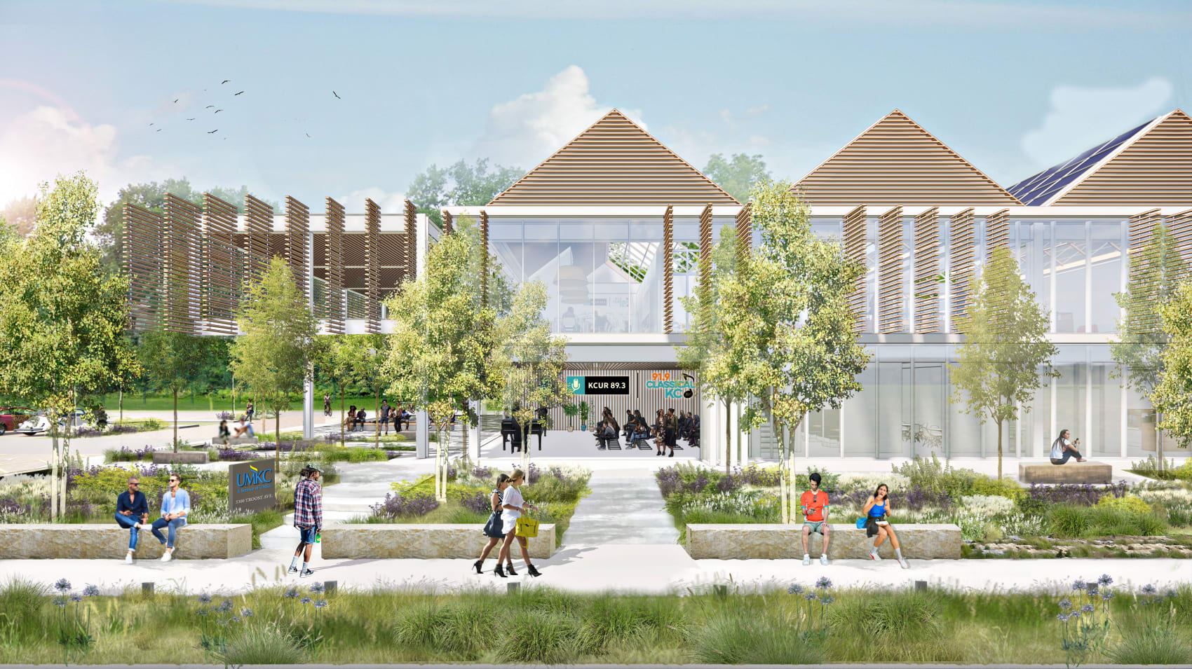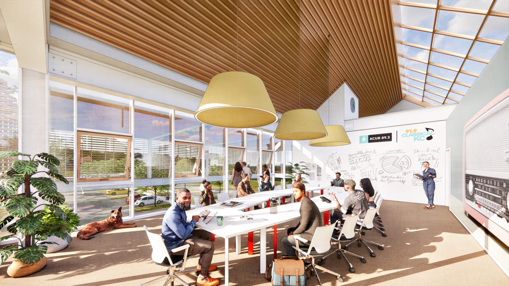 View MoreLessEl Dorado was asked to design a series of solutions for the University of Missouri - Kansas City’s KCUR radio station that 1) addresses space needs now and for the forseeable future and 2) Provides a new home for KCPM that strengthens its presence in the community and engages with it in meaningful ways. This study considers a 2-story new-build on the selected 5300 Troost site, in the spirit of providing KCPM with the best possible home for the future. A set of ten (10) common, overarching project principles have been created to guide the development of this proposal. These principles range in scale from highly conceptual to specific and from regional to architectural.