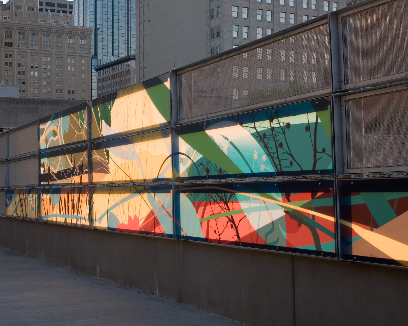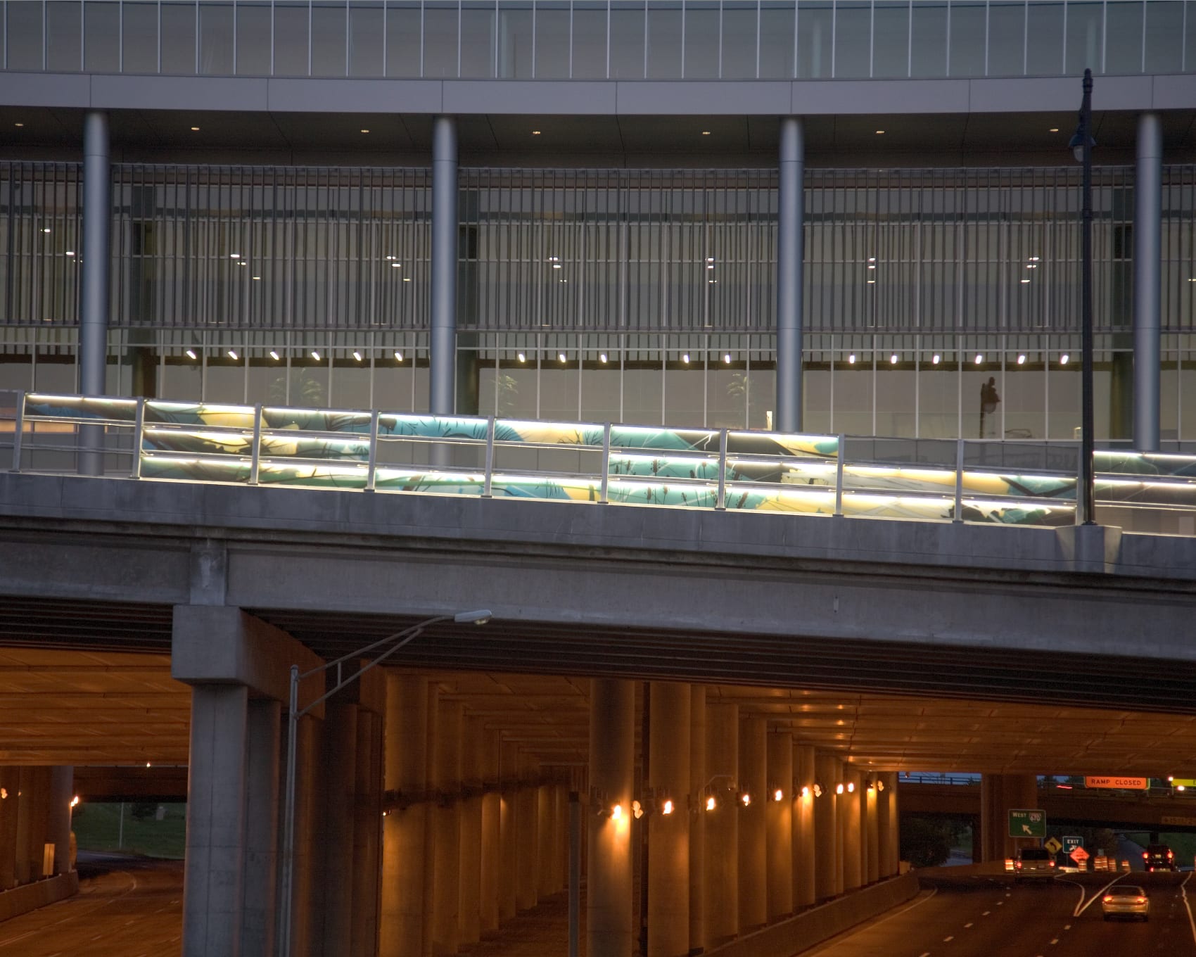 View MoreLessIn 2006, El Dorado teamed up with local motion graphics firm MK12 to win a competition to design the new guardrail system for the Wyandotte Bridge in downtown Kansas City. The design is the result of an intensive collaboration and integrates a novel (and MODOT code-compliant) structural design that serves to house an integral and easily-maintained lighting element. The graphics for the system suggest a rich diversity of natural landscaping which is a direct contrast to the expansive interstate system below. The “landscaping” will glow at night, providing a safe pedestrian path across the bridge in addition to an interesting visual element for the cars passing below on I-670.