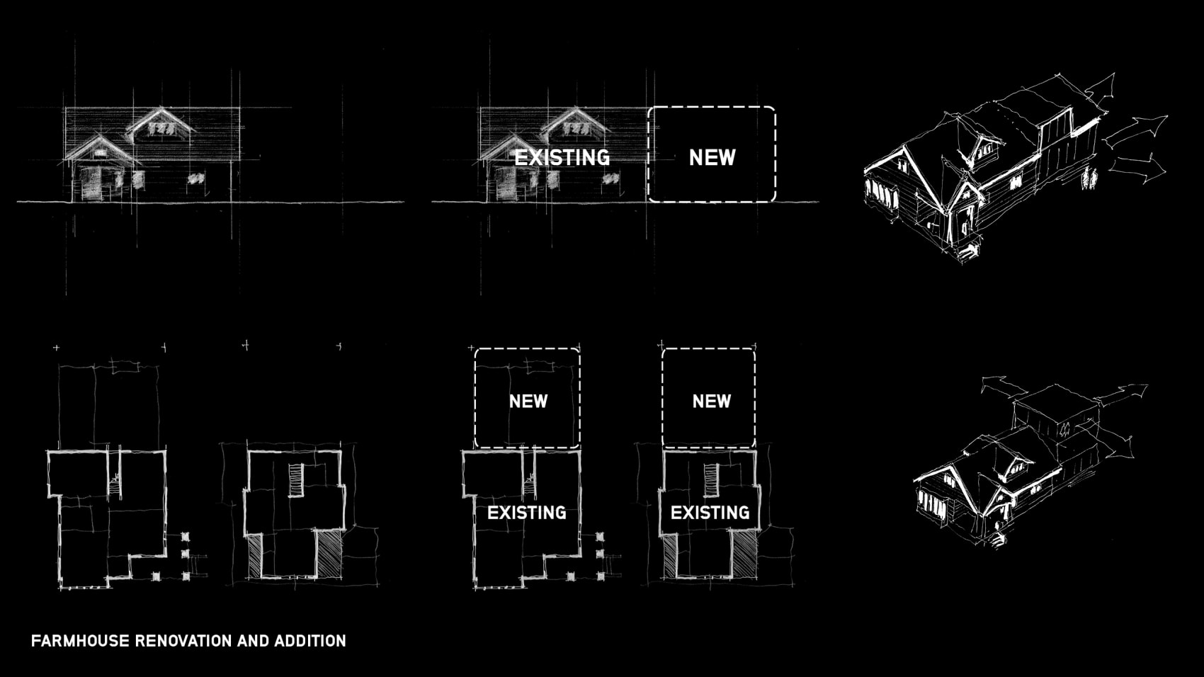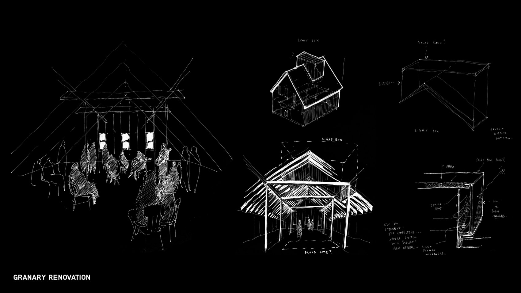 The second step focused on architectural assets – the main house, the granary and outbuildings. A series of conceptual studies for all structures, designed in parallel with landscape studies allowed a holistic sense of the future farm to unfold. While a more complex challenge than the original request, the effort of land stewardship is now properly positioned as the guiding concept for the work.