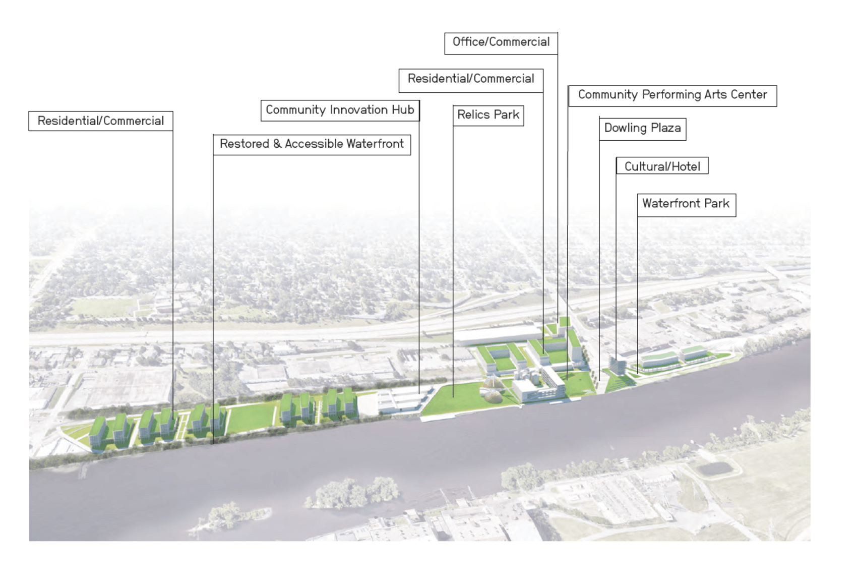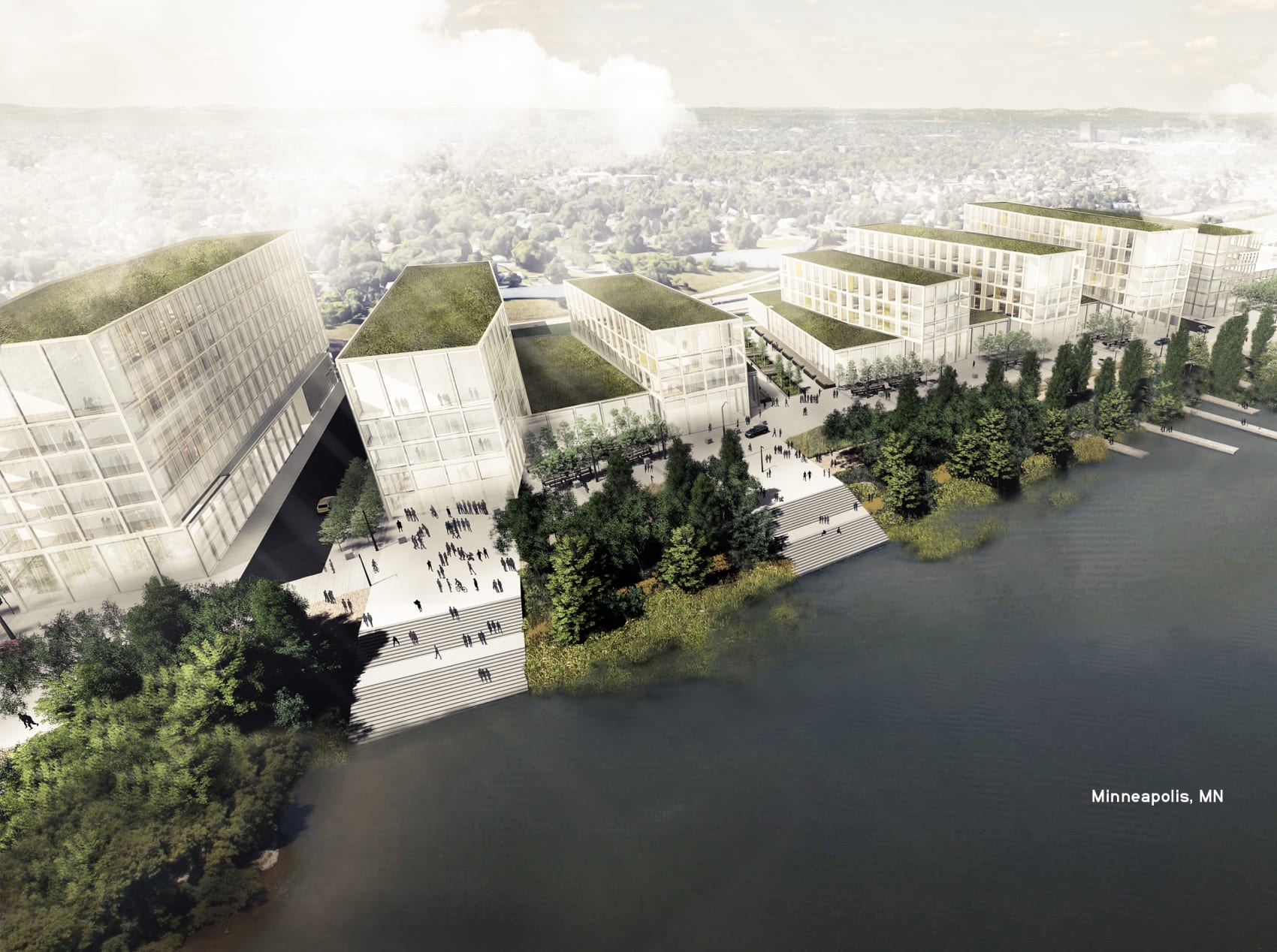 El Dorado and Coen+Partners have developed a plan that infuses forward-thinking transit strategies into a mixed use development to sustain and modernize the former industrial site. Innovative approaches to corridor design strengthen connections to an existing local workforce while offering sustainable and performative environmental strategies to assist in remediating the brownfield conditions found throughout the site. The project will ultimately evolve as a public-private partnership with the City of Minneapolis, introducing an extensive riverfront park, multi-modal transportation systems, a new outdoor music venue design by SHoP Architects, and new models for dense, mixed income housing.